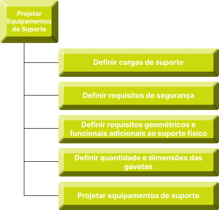 Assim, para os equipamentos de suporte em geral, devem-se definir as condições de carga, seus requisitos funcionais quando relacionados com posicionamento e estabilização do produto em local de uso, coeficientes de segurança a serem levados em consideração para o dimensionamento das peças e escolha dos materiais a serem utilizados e requisitos de segurança estabelecidos em normas técnicas.
