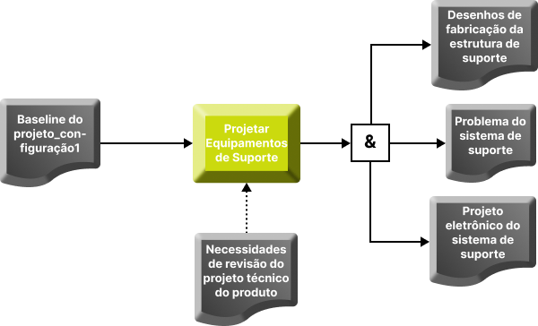 A entrada básica para a atividade é a configuração aprovada do protótipo ALFA. As saídas são os desenhos de fabricação mecânica e o projeto eletrônico dos equipamentos de suporte, assim como um croqui com seu esquema básico.